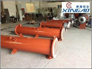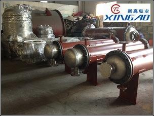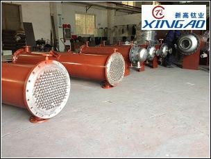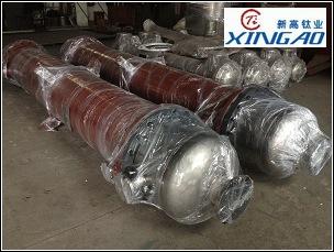 我廠生產(chǎn)的冷凝器,按材質(zhì)分為復(fù)合鈦冷凝器、純鈦冷凝器二種,按形式分為固定管板式、浮頭式、U型管式換熱器, 按結(jié)構(gòu)分為單管程、雙管程和多管程。傳熱面積0.5-500m2,可根據(jù)用戶需要定制。